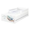 Posteľ je vyrobená z drevotriesky hrubej 16 mm, hladkej bielej farby, povrchovo upravená mäkkou dyhou. Každý prvok postele je zaoblený, aby bola zaistená maximálna bezpečnosť pre dieťa, vyhýbame sa ostrým a nebezpečným hranám.