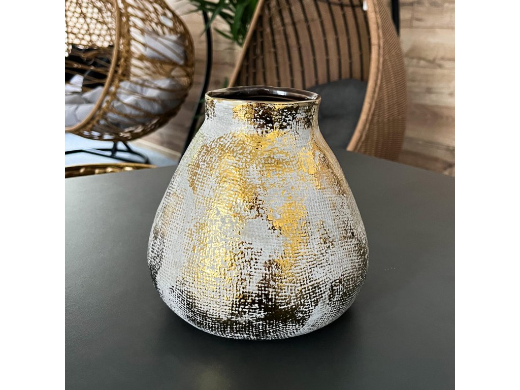 Vázu elegant len tak neprehliadnete. Keramická váza Elegant, nešetrí na zlatom odlesku a so svojím efektným povrchom so všetkým sebavedomím zaujme každý pohľad, napríklad na prestretom stole, na príborníku alebo odkladacom stolíku.