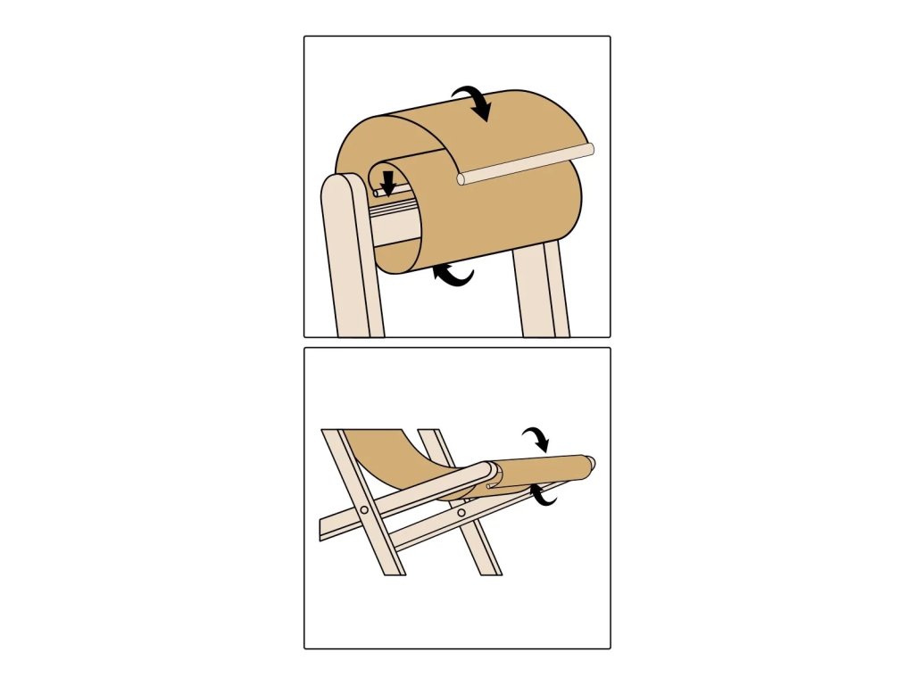 Lehátko je vyrobené z lešteného, nelakovaného bukového dreva. Má trojstupňové nastavenie chrbtovej opierky s ochranou proti náhodnému zloženiu lehátka.