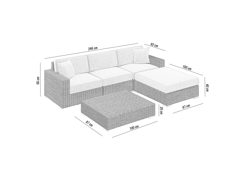 Sada záhradného nábytku vyrobeného z umelého ratanu Milano I je návrh určený ľuďom, ktorí chcú vkusne zariadiť veľké priestory. Vďaka veľkému počtu komponentov, ktoré sa modulárne spájajú, môžete tvorivo tvarovať svoje okolie. Sada pozostáva z troch centrálnych prvkov a až z troch rohov, z ktorých si môžete počas pohodlnej záhradnej párty vytvoriť pohodlnú rohovú pohovku, v ktorej budú pohodlne usadení všetci priatelia a rodina. Získate extra sedenie, keď zmeníte stôl z umelého ratanu na pohodlnú taburetku.