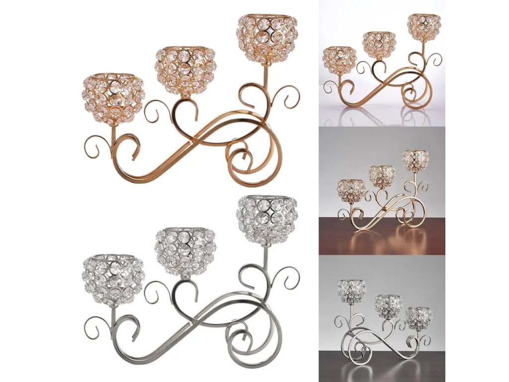 - Dizajn tohto moderného oblúkového svietnika je inšpirovaný železným mostom, môže zaistiť, že držiak je pevný a stabilný. Horné 3 samostatné misky z iskrivého krištáľu ho robia nádherným.