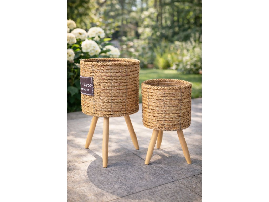 Prírodný kvetináč na drevených nožičkách – SET 2 ks
