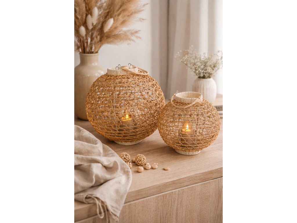 Vytvorte si doma alebo na terase príjemnú, teplú atmosféru s elegantnými prírodnými prútenými lampášmi. Ich nadčasový boho štýl v kombinácii s jemným svetlom sviečky pôsobí útulne a harmonicky.