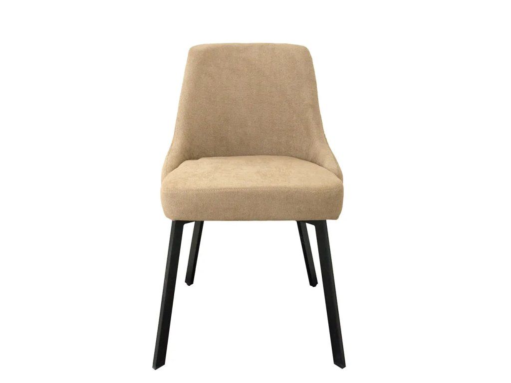 Mäkké čalúnenie v teplom odtieni poskytuje vysoký komfort pri sedení, zatiaľ čo ergonomicky tvarované operadlo zabezpečuje príjemnú oporu chrbta. Stabilné drevené nohy v tmavom prevedení dodávajú stoličke pevnosť a vizuálnu rovnováhu.