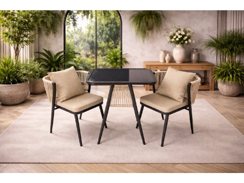- Záhradný set pozostávajúci z dvoch stoličiek a stola je praktickým riešením pre každú záhradu, terasu či terasu - vďaka modernému dizajnu im dodáva eleganciu a funkčnosť.