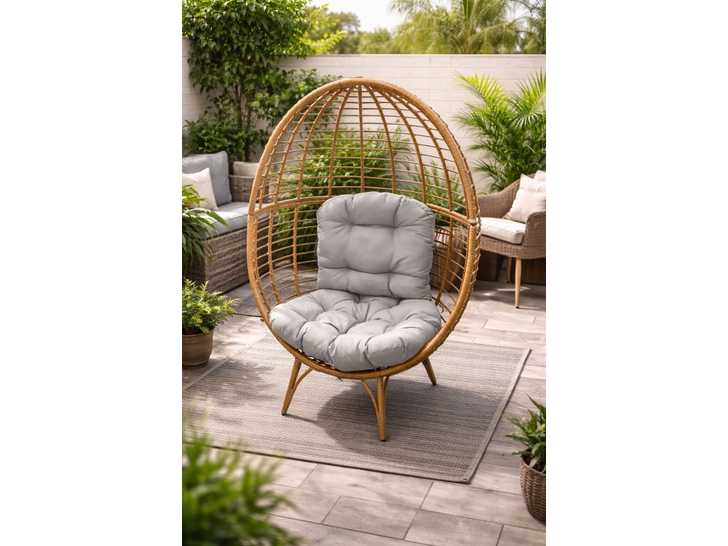 Vďaka modernému dizajnu sa veľmi ľahko skladá (2 priskrutkované časti košíka + nohy). Vďaka dvom pohodlným prešívaným vankúšom poskytne relax v súkromí vášho domova. Jeho jedinečná forma ho odlišuje od štandardných kresiel. Farba kresiel dokonale zapadá do trendov moderného štýlu boho.