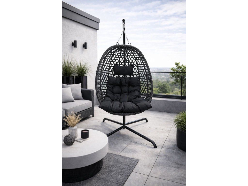 Dopraj si dokonalý relax na terase, balkóne alebo v záhrade. Toto štýlové závesné kreslo v tvare vajíčka kombinuje moderný dizajn, pohodlie a odolnosť, vďaka čomu sa stane dominantou každého exteriéru.