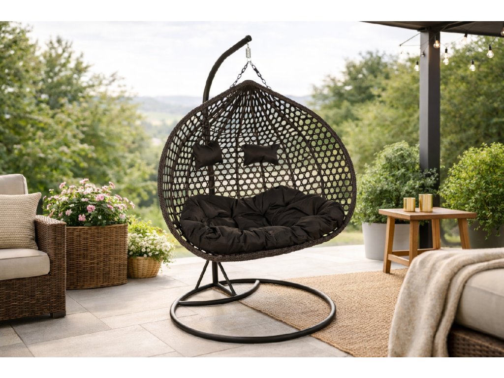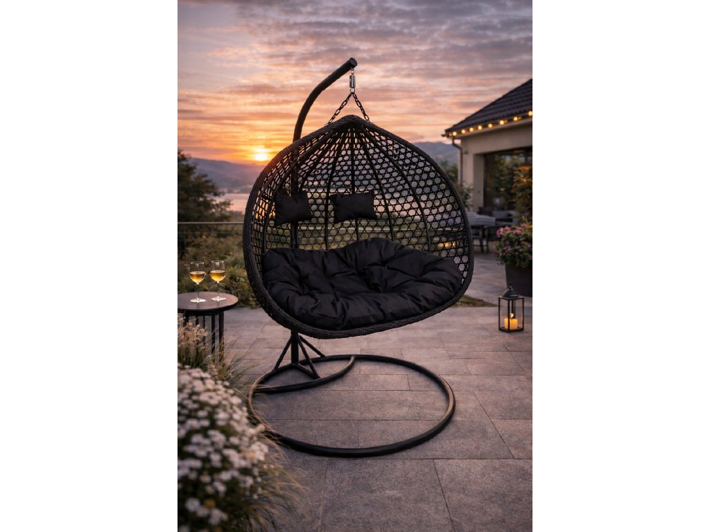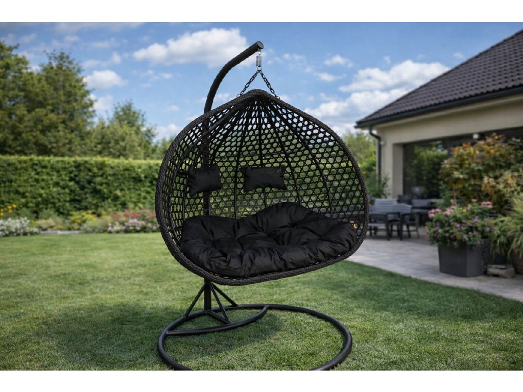 Kreslo je zavesené na pevnom kovovom stojane, ktorý zaisťuje stabilitu a bezpečnosť používania a mäkké vankúše podporujú relaxáciu a trávenie času vonku.